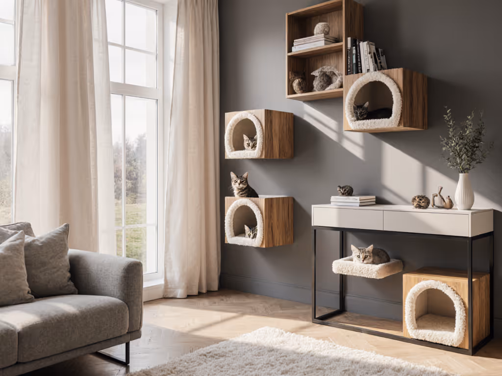 Let the room do some of the work. A narrow gap between your sofa and wall? Frame it with a simple wooden cube and plush interior. This spatial approach creates seamless cat protection furniture that feels like part of your home's architecture. If you're weighing wall-mounting options, compare drill-free vs drilled mounting systems to choose safe hardware for your walls.