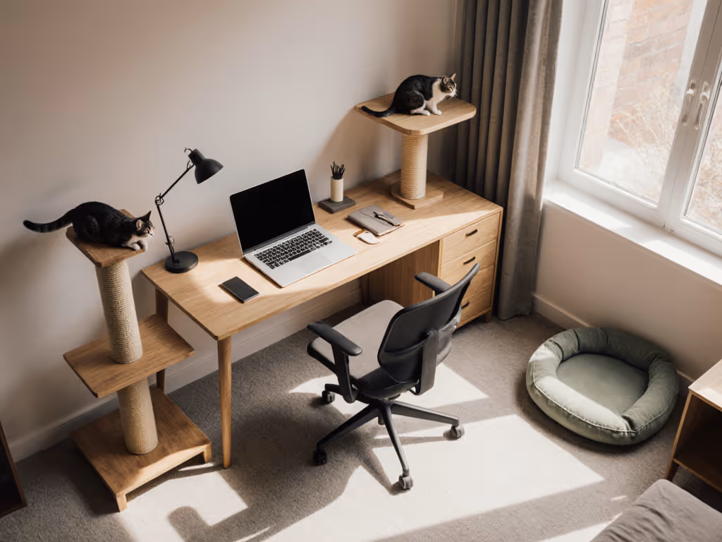 Your workspace shouldn't feel like a battleground between productivity and companionship. When designed with insight and intentionality, it becomes a shared space where both human and feline thrive (without the constant tug-of-war for keyboard dominance).