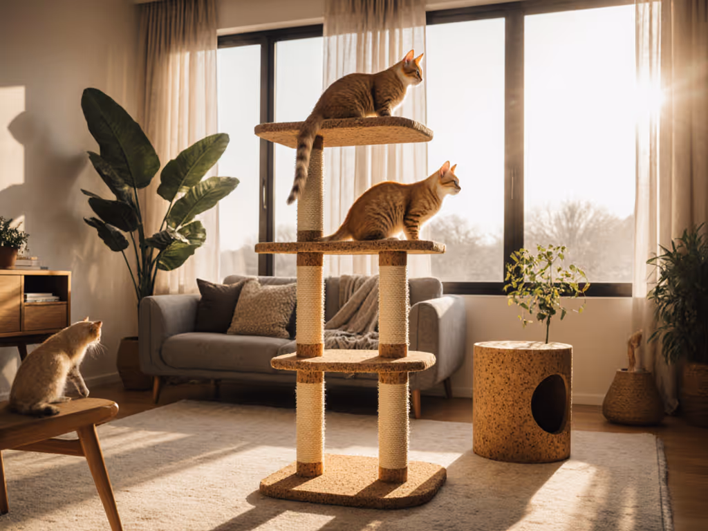 Each material serves specific behavioral purposes. Bamboo provides stable platforms for observation posts. Cardboard satisfies intense scratching urges while being fully recyclable. Smell is a room too, which means the natural scents of these materials create a more comfortable environment than synthetic alternatives that mask odors with artificial fragrances.