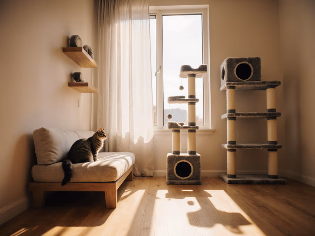 Not all cats have the same cold tolerance, hairless breeds need significantly more warmth than thick-coated breeds. For conflict-free layouts and vertical zoning, use our multi-cat territory design guide. Create layered environments within your unique cat furniture: