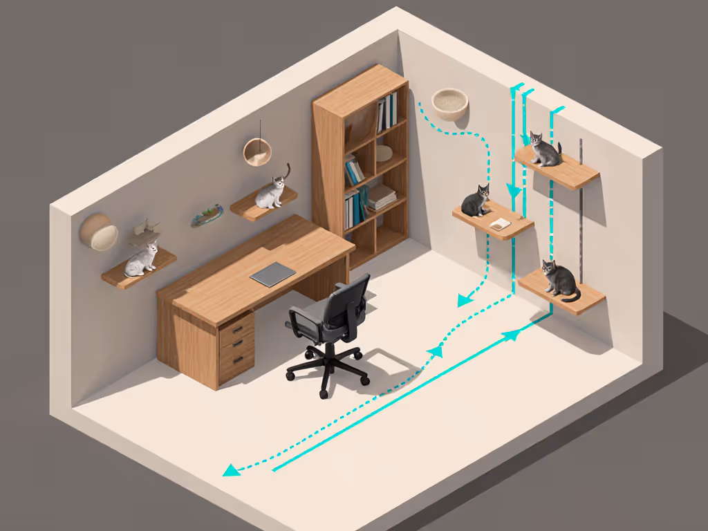 The winning strategy? Let the room do some of the work. Integrate cat zones into existing structures (bookshelves for vertical pathways, under-desk nooks for retreats) so solutions feel intentional, not additive. If you're choosing a vertical approach, compare wall shelves vs cat trees to balance space, safety, and style. This approach directly addresses pressing pain points like cluttered spaces and behavioral friction while aligning with your desire for a cohesive, stimulating environment. For evidence-backed benefits, see how cat enrichment furniture prevents destructive behavior and improves focus.